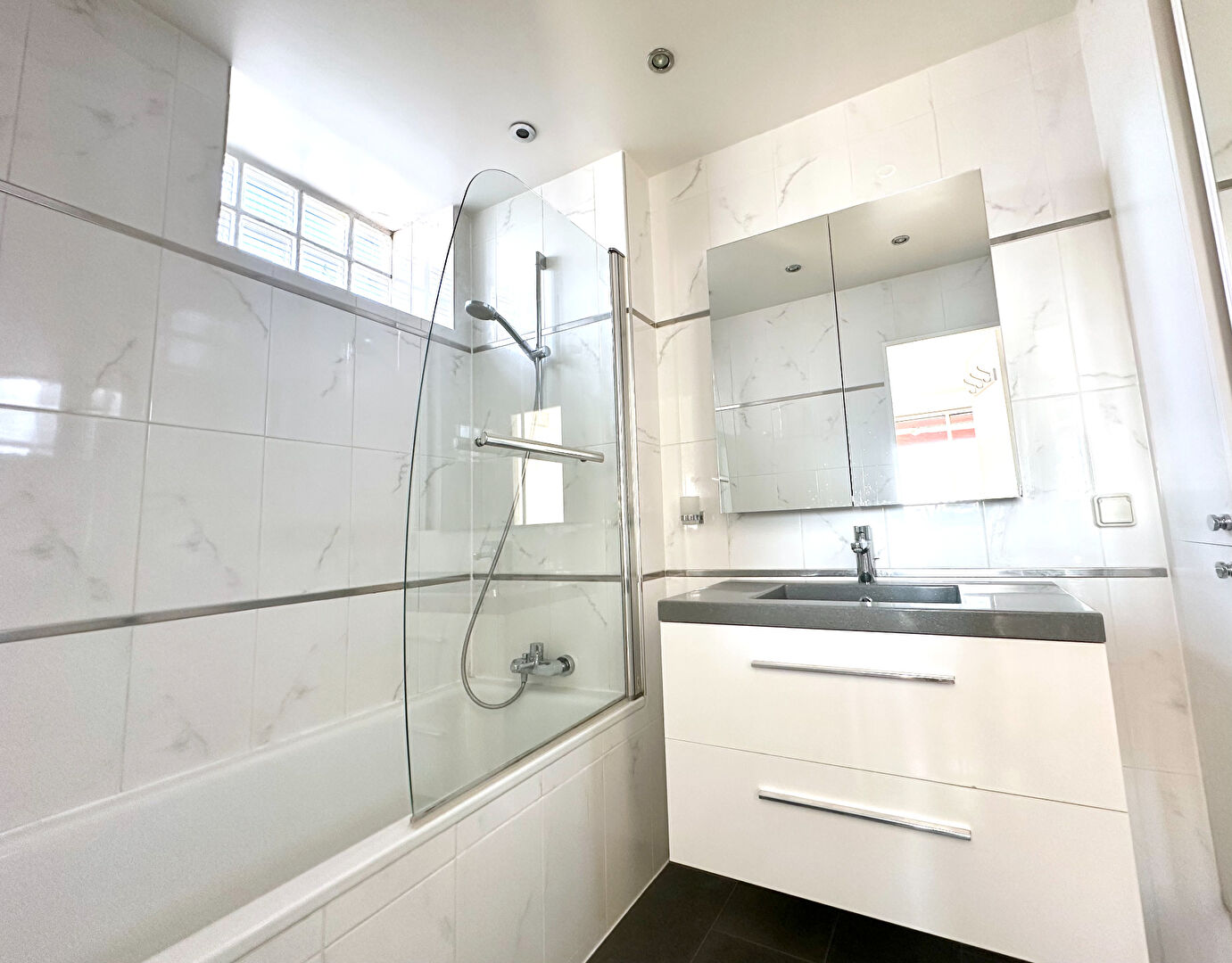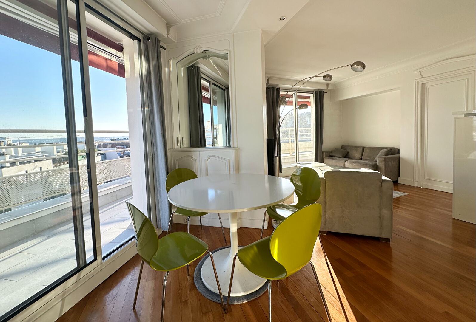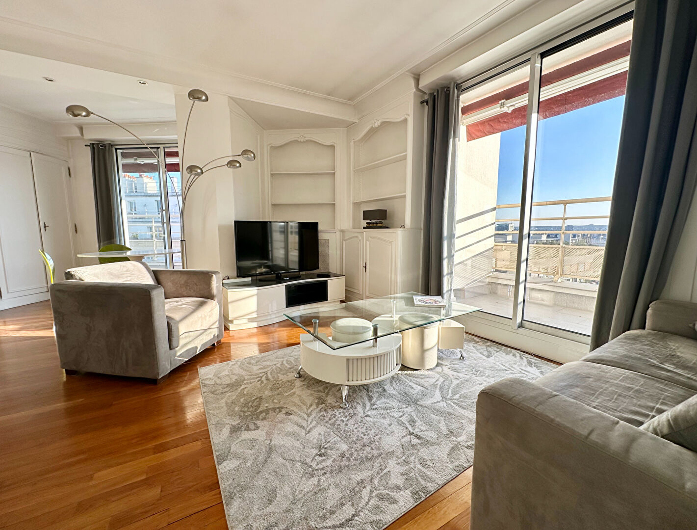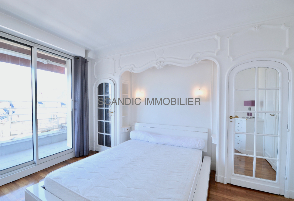 La Muette / Trocadéro - Dans un immeuble récent de bon standing un appartement meublé de 55 m2 situé au 8ème étage composé d'une entrée un séjour - salle à manger, une chambre, une salle de bains, une grande terrasse de 27 m2 avec une superbe vue sur la Tour EiffelChauffage collectifMétro: La Muette ( Ligne 9 )Passy ( LIgne 6 )