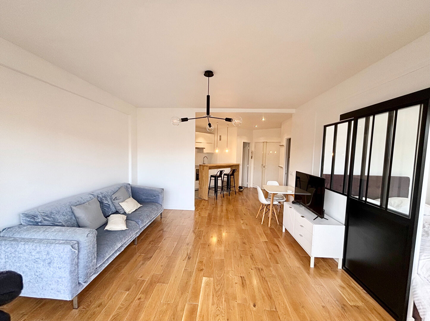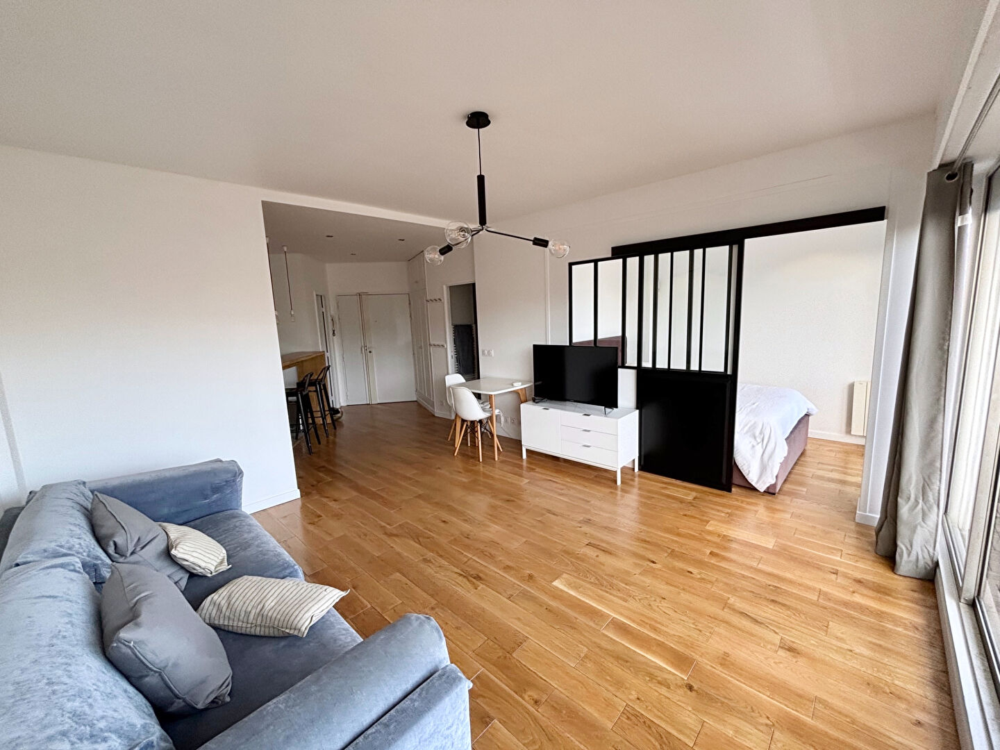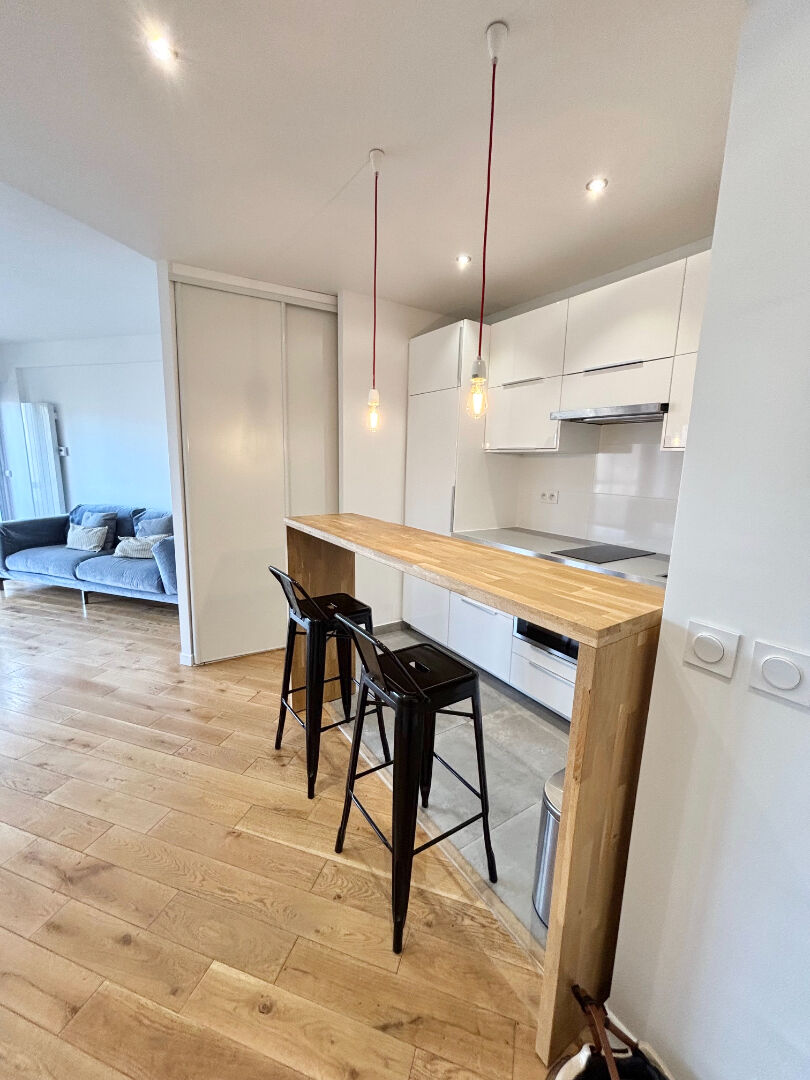 Bd Richard Lenoir, dans un immeuble récent de bon standing, situé au 5ème étage avec ascenseur, un appartement meublé entièrement refait neuf composé d'un séjour avec une cuisine américaine, d'une chambre, d'une salle de douche à l'italienne, des WC, Parquet. Grand balcon avec vue dégagée, chauffage ind électrique, Métro: Bréget - Sabin ( Ligne 5 ) Bastille ( Ligne 1,8 )