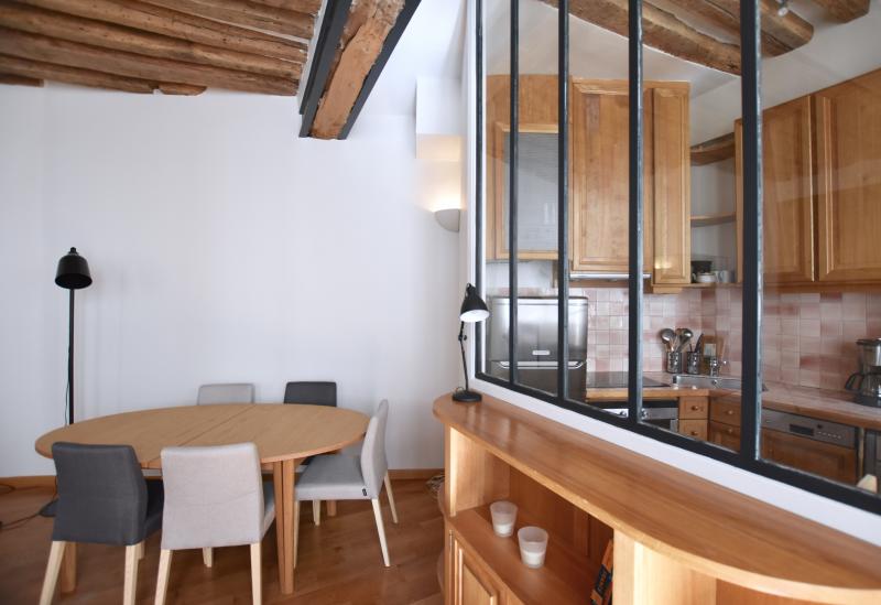 Quartier Odéon Dans un immeuble ancien, situé au 2ème étage, un appartement meublé d'une superficie de 55m² donnant sur grande cour arborée. Très grand séjour avec salon-salle à manger, Cuisine entièrement équipée séparée du séjour par une verrière (lave linge, lave vaisselle, four, micro onde, réfrigérateur, plaques de cuisson). Appartement calme et très lumineux. Chauffage ind. au gaz Métros : Odéon (ligne 4 et 10) et Saint-Michel Notre-Dame (RER B et RER C)