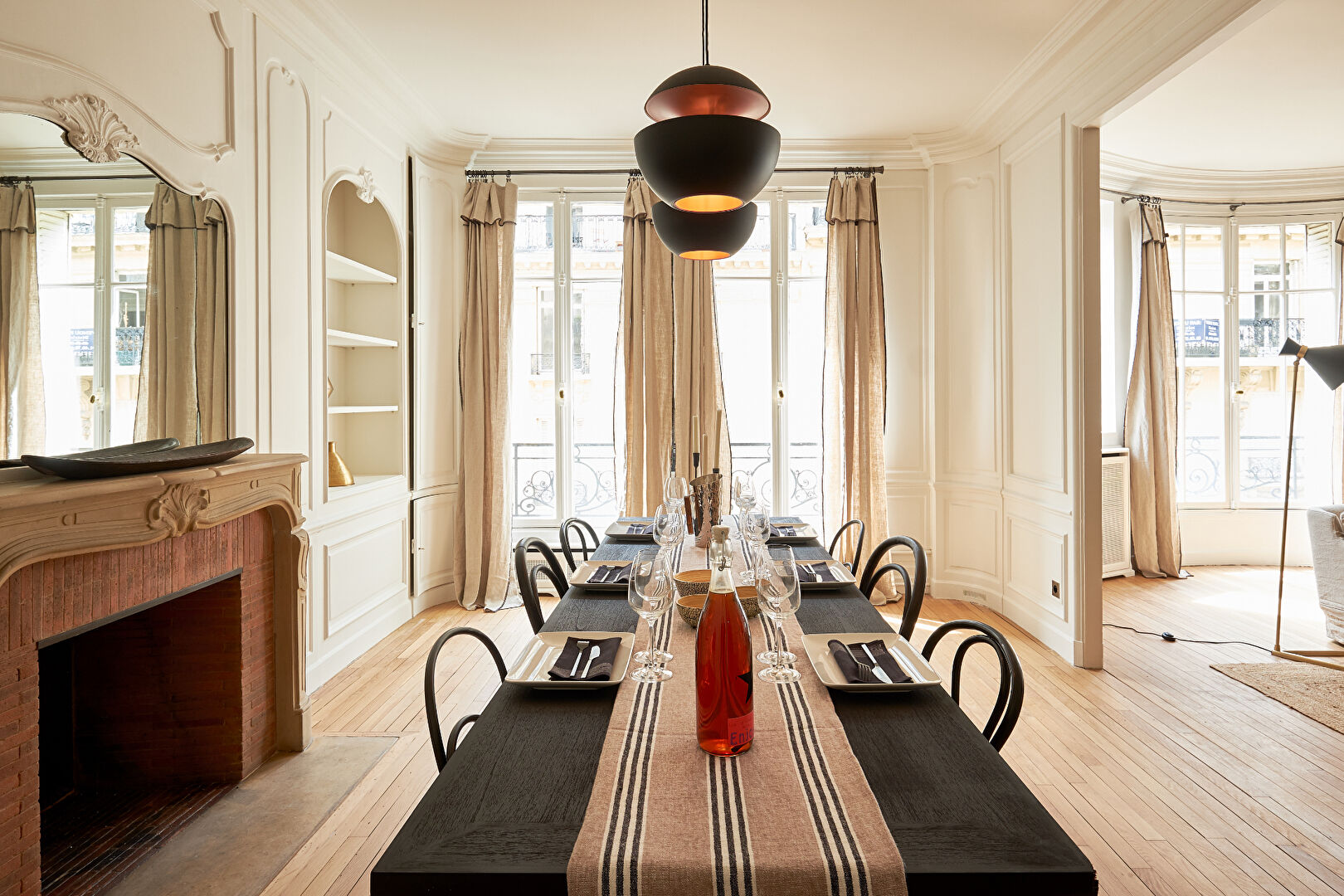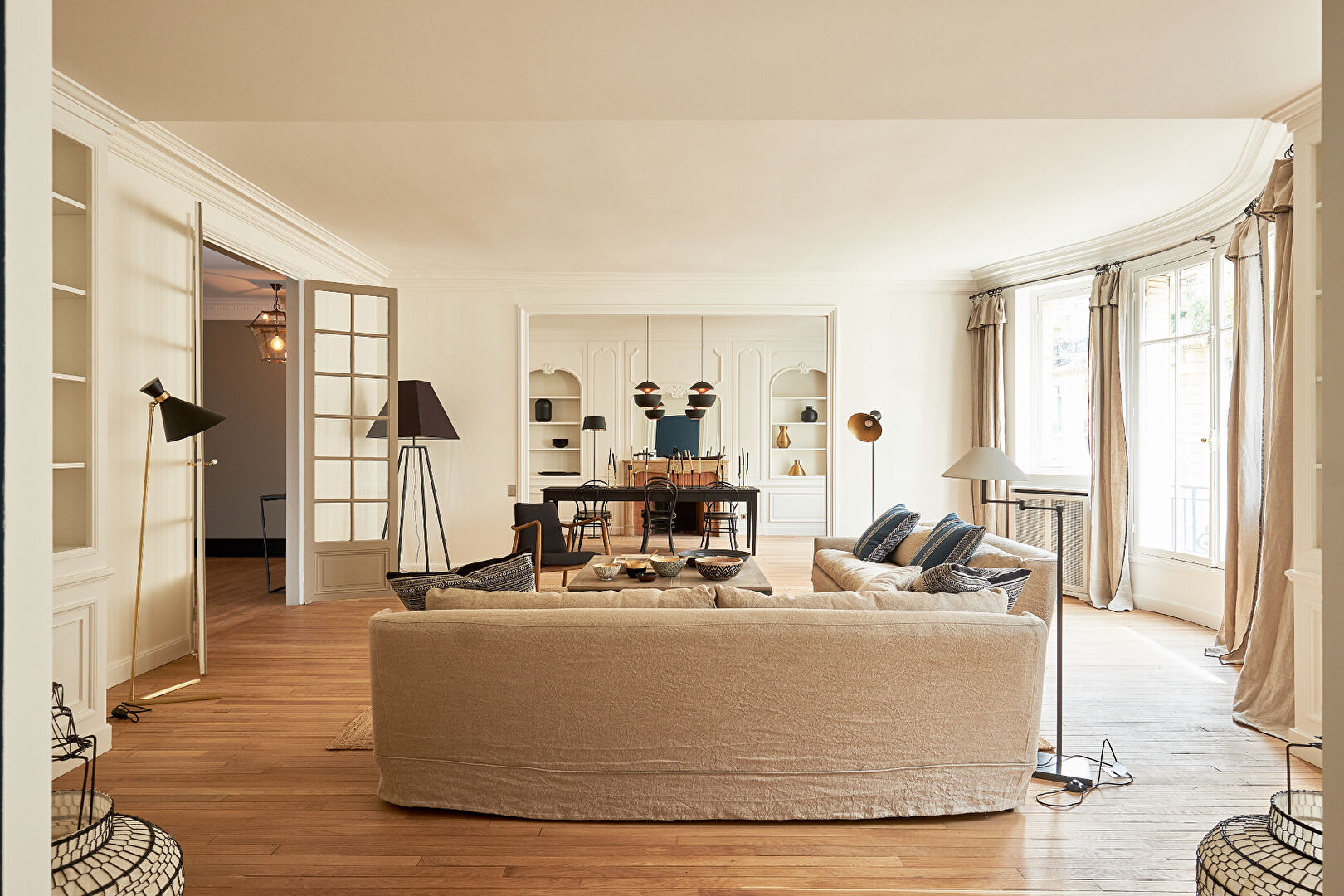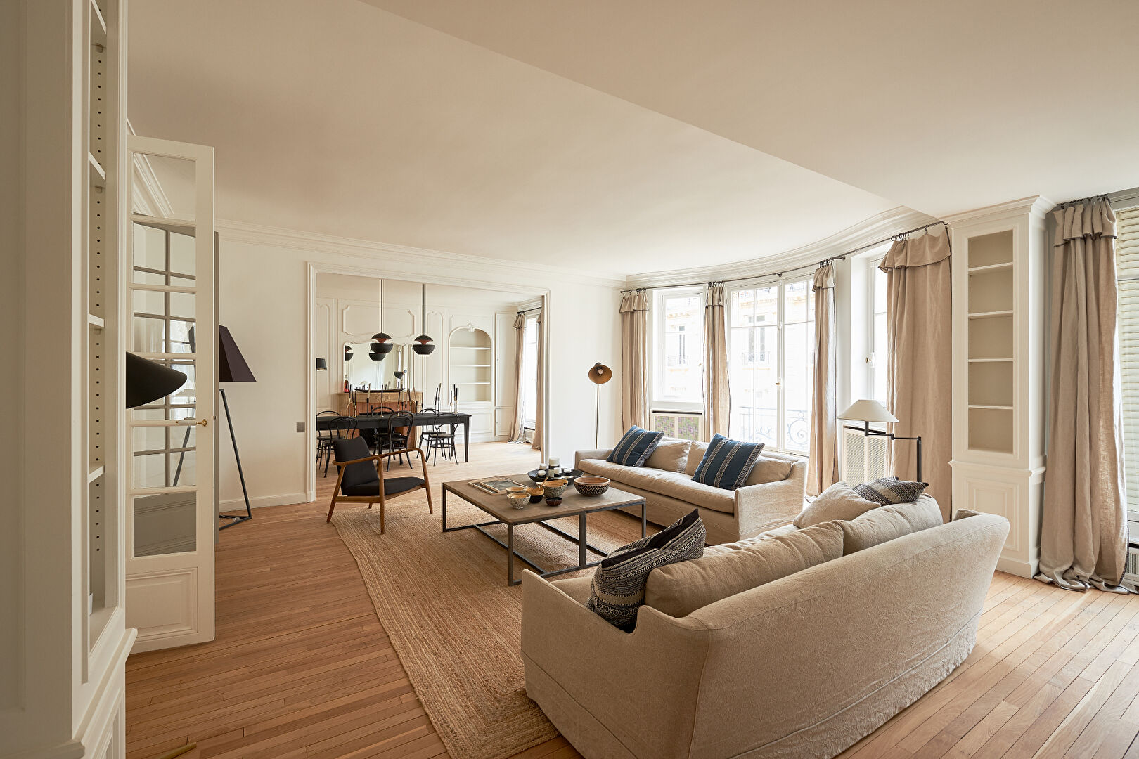 Quartier Parc Monceau - Rue Beaujon, Dans un immeuble Haussmannien de standing, situé au 4ème étage avec ascenseur, un appartement meublé de 200 m2. Entièrement refait à neuf par architecte - travaux de très haut de gamme - première location - mobilier neuf. Composé d'une galerie d'entrée, d'un grand salon - salle à manger, trois chambres, family-room ou d'un quatrième chambre, d'une cuisine neuve séparée, d'une salles de bains neuve, de deux salles de douches neuves, de deux wc. Chauffage et eau chaude collectif.
