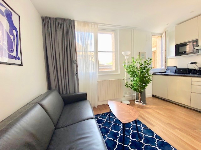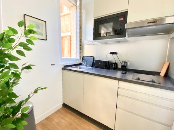 Rue JuvernetDans un bel immeuble ancien, au appartement meublé de 30 m2, situé au 2ème étage avec ascenseur, composé d'une entrée, un séjour avec canapé lit, une cuisine américaine, une chambre avec rangement, une salle de douche, exposition est-ouestChauffage central, caveMétro: Chardon LagacheUniquement bail Code Civil : Logement de Fonction ou Résidence Secondaire